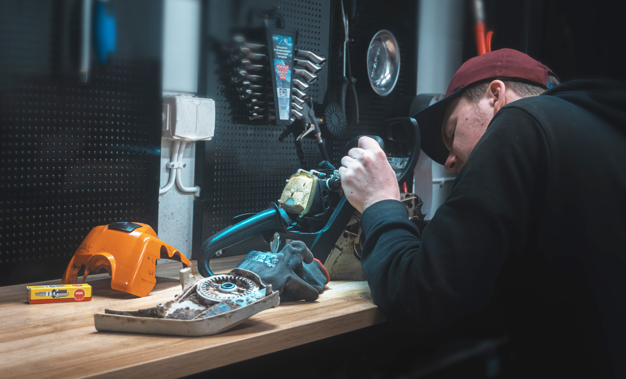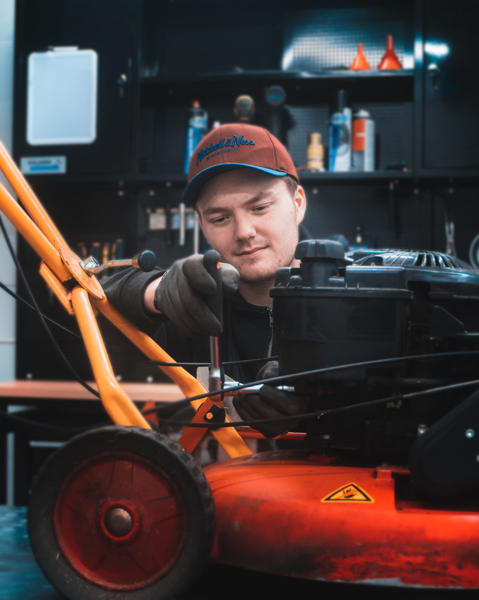 Vi har en komplett verkstad för reparation av era trädgårdsmaskiner.